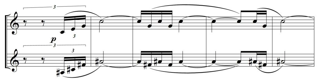 and it’s exactly the same notes – apart from the occasional octave transposition – but arranged vertically [harmonically] rather than horizontally [melodically].)