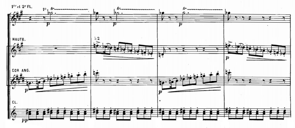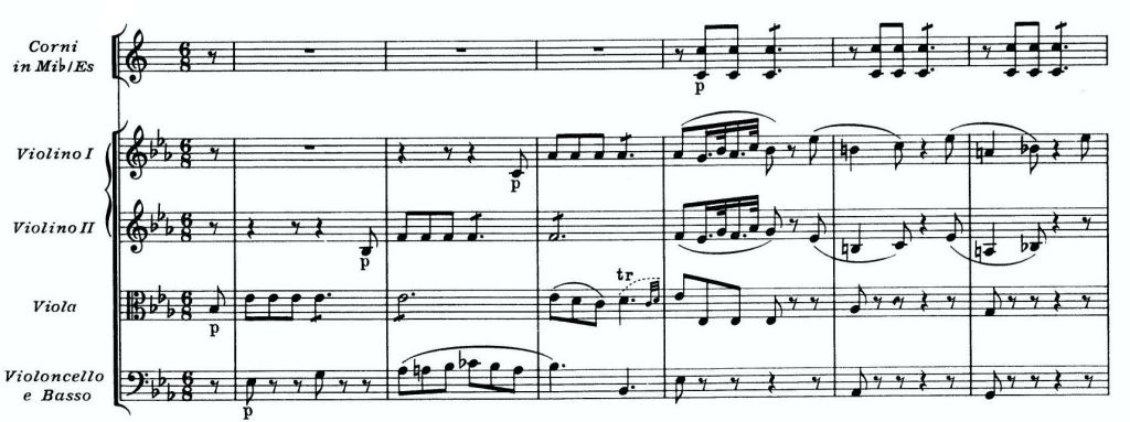 So, it’s left to the interpreter, in this case the conductor, to decide the articulation. Take the Mozart example above, those opening repeated quavers on the violas, then on the second and finally the first violins; should there be an infinitesimal silence between them or should they be continuous? Here’s one possible interpretation: