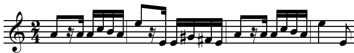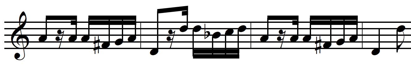 Now, if we invert it i.e. turn it upside down (go down the number of semitones the original went up and, conversely, up when the original went down) we get: