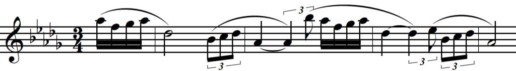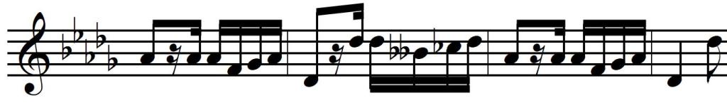 You’ll notice that there are two notes that don’t fit in D-flat major (they’re the ones with the extra flats):