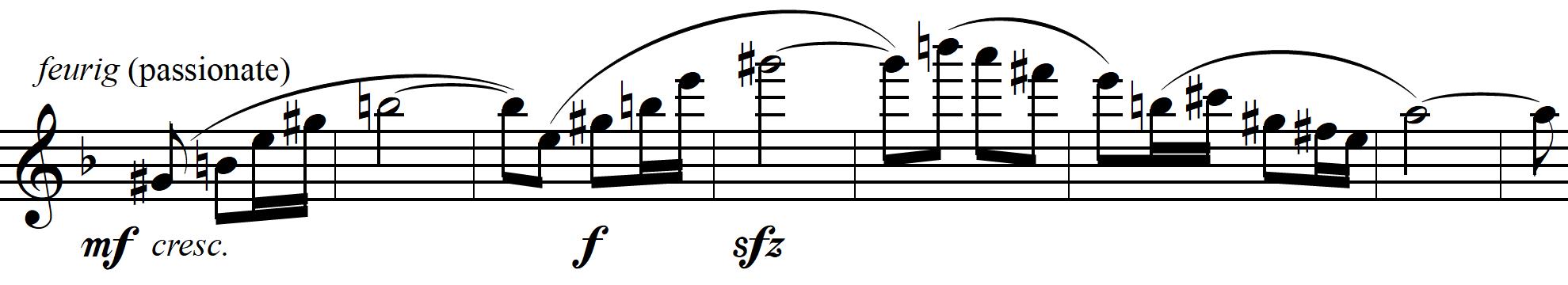 The piece revolves around three thematic groups that ‘picture’ the husband, then the wife and finally the baby. As an example here are some of the themes/leitmotifs with which Strauss draws a pen portrait of himself (they appear right at the beginning of the work):