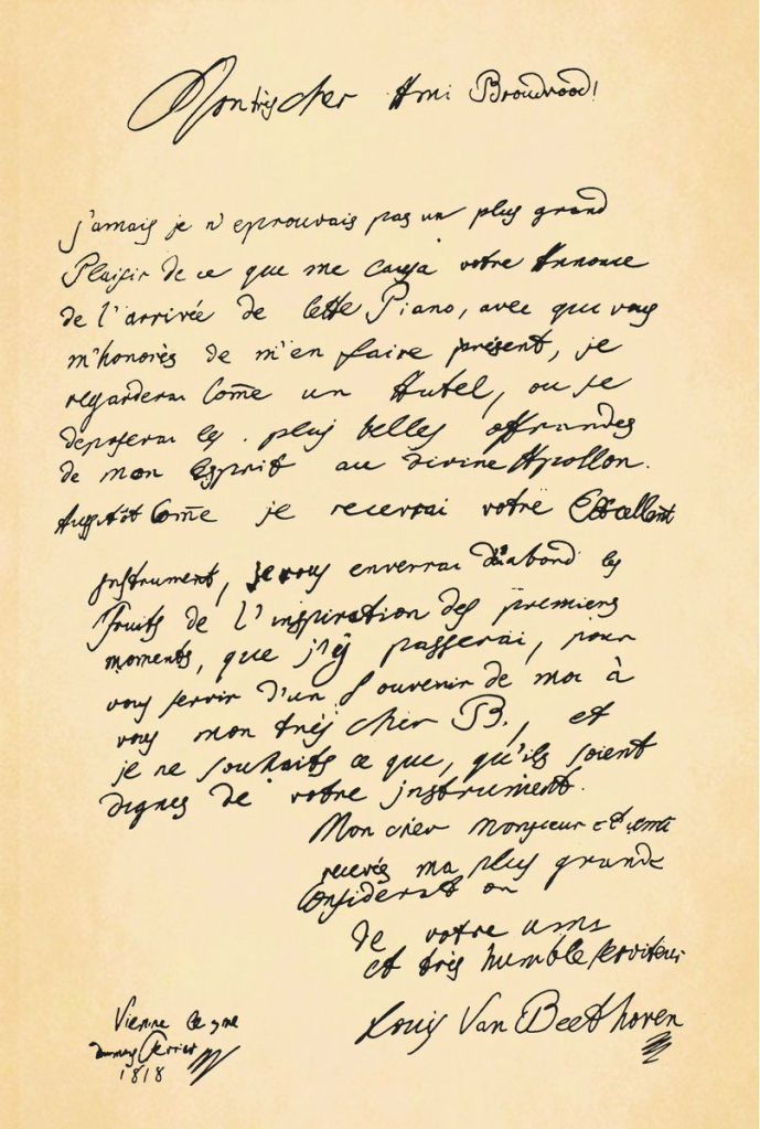 Beethoven’s letter (in French!) thanking Thomas Broadwood for the 1818 gift of a piano.