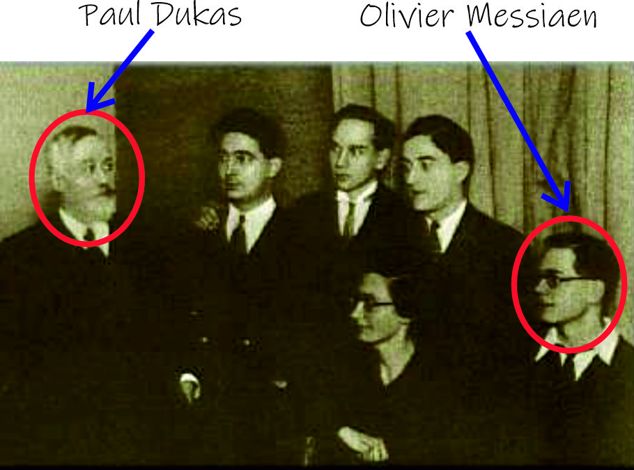 The image is a detail from a photo of Dukas (1865-1935) surrounded by his Conservatoire composition pupils; and, as you can see, in the far righthand corner lurks one of the most famous of them.
